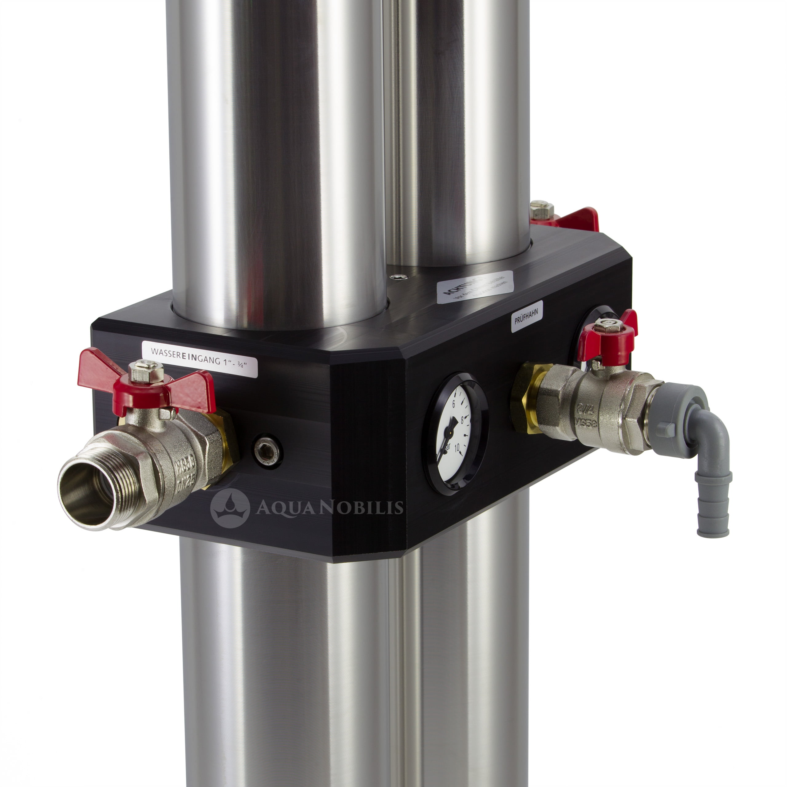 - 4 Edelstahlzylindern (bietet Platz für 4 Carbonit WFP-Patronen), inklusive Verschlussdeckeln